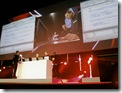 Démo: Pierre Lagarde nous montre le SDK Azure sous Visual Studio 2008. Il fait une application Web qui sera hébergée dans le nuage. Pour stocker les photos de l'application, il utilise des blobs dans le nuage, qui permet notamment d'y accéder via la technologie REST. Il utilise une interface Silverlight pour uploader les photos. Pour traiter les photos, il utilise une application "Worker Role", qui permet de modéliser un service, en l'occurrence de file d'attente - et pour cela il écrit une simple boucle while. Pour la publication de l'application, il n'y a qu'un fichier package avec un fichier de configuration à uploader.